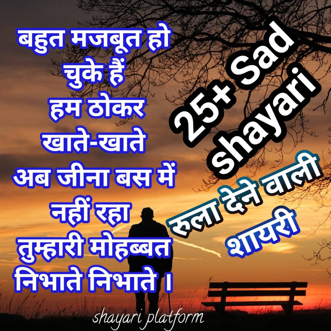 आज के इस आर्टिकल मे प्रस्तुत है 25 sad shayari hindi . 25+ Rula dene wali shayari , बेहतरीन sad शायरी , dard bhari shayari , Rula Dene Wali shayari , Jakhmi Dil shayari, Aur Dil Ko Chhu jaane wali Shayari , ke sath mein is artical ko post kar raha hun.