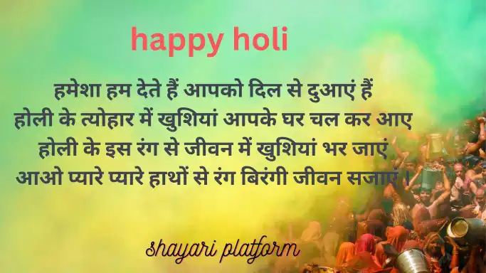 hello मेरे प्यारे दोस्तों आप सभी को shayari platform पर बहुत बहुत स्वागत है, प्रस्तुत है holi ki Shayari image hindi me !