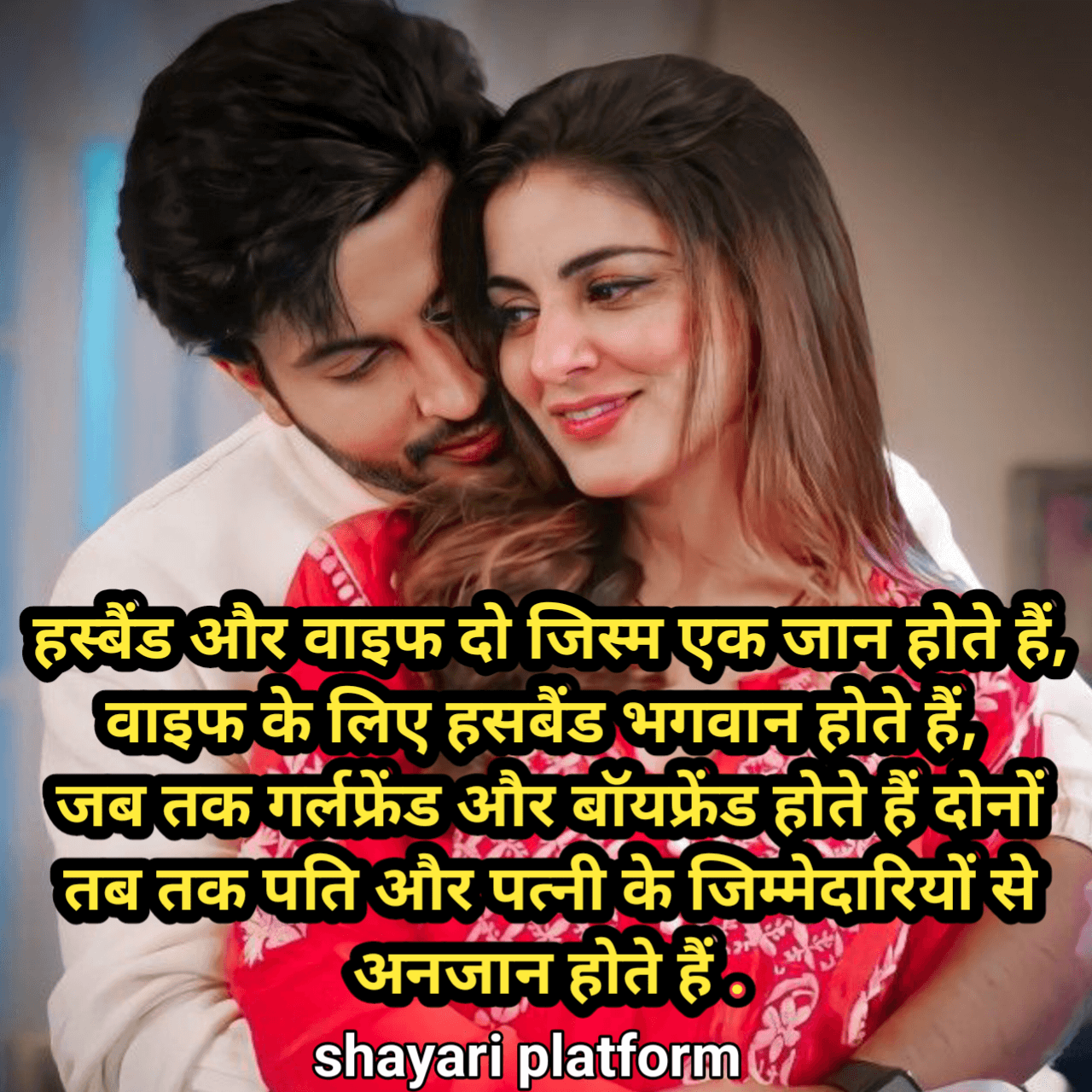 मेरे प्यारे दोस्तों आप सभी को Shayari platform पर बहुत बहुत स्वागत है,प्रस्तुत है real love husband wife love shayari .