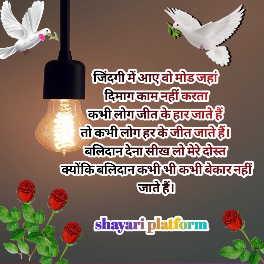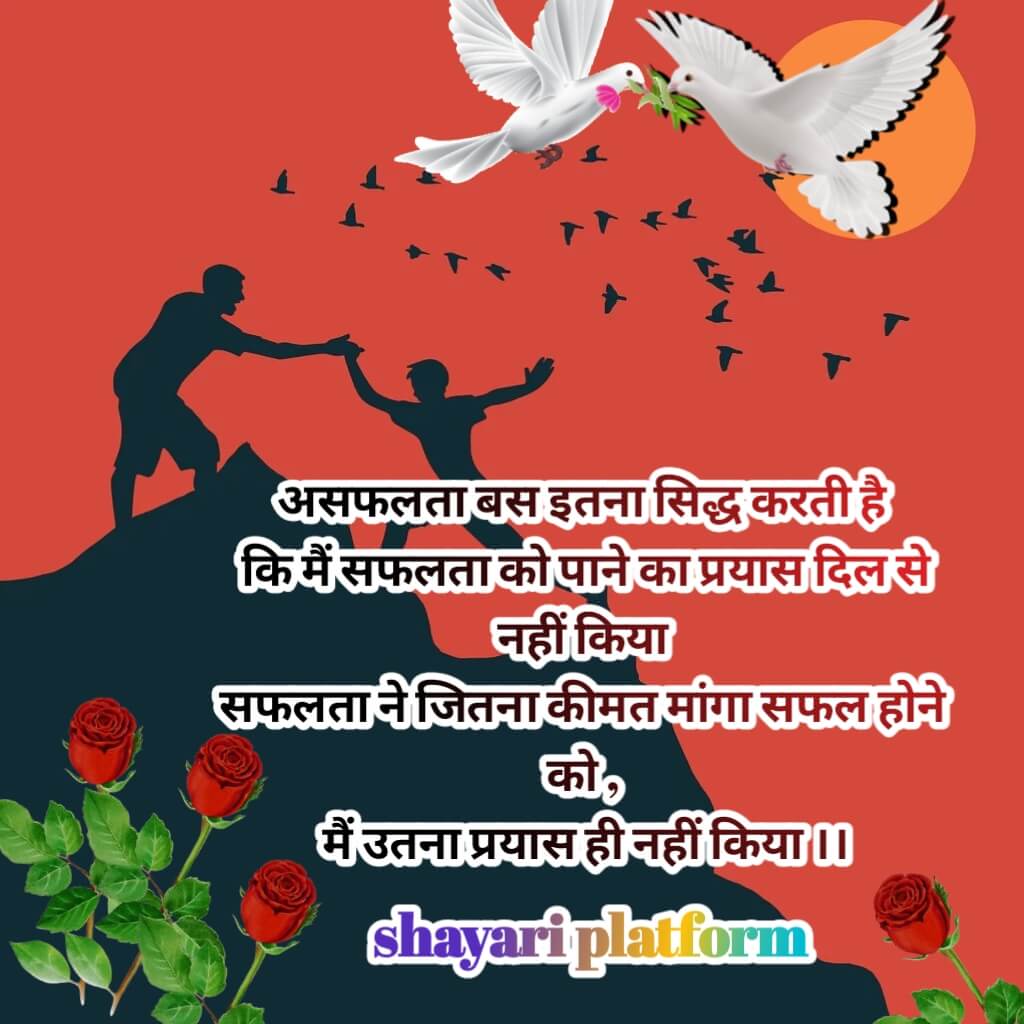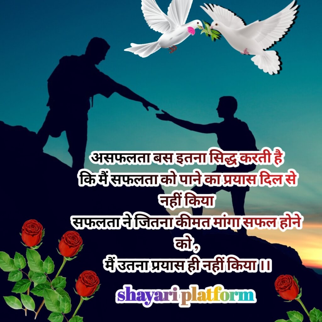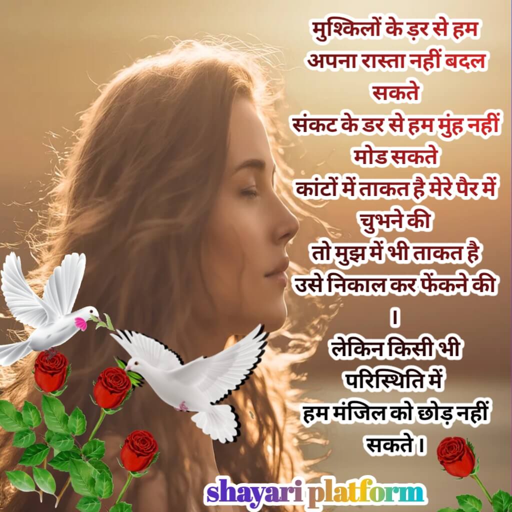 इस मोटिवेशनल शायरी को आप फेसबुक ,यूट्यूब , इंस्टाग्राम , और अन्य सोशल मीडिया पर और अपने रिश्तेदारों को शेयर कर सकते हैं , तो चलिए बिना देर किए हुए स्टार्ट करते हैं , आज का यह खूबसूरत लाइफ चेंजिंग शायरी स्टेटस जो आपकी जिंदगी को सक्सेस बनाने में एक महत्वपूर्ण भूमिका निभाने वाली है.