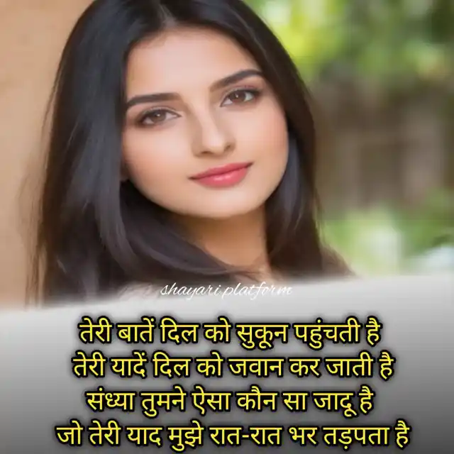 इस पोस्ट को आप अपने सभी सोशल मीडिया पर शेयर कर सकते हैं , और अगर आपकी भी कोई दिल में फरमाइश है तो आप हमें कमेंट में बताएं, हम आपकी फरमाइश को पूरा करने का प्रयास करेंगे , तो लिए शुरूआत करते हैं , आज का यह दिल को छू जाने वाला संध्या नाम का लव और सैड और रोमांटिक शायरी स्टेटस.